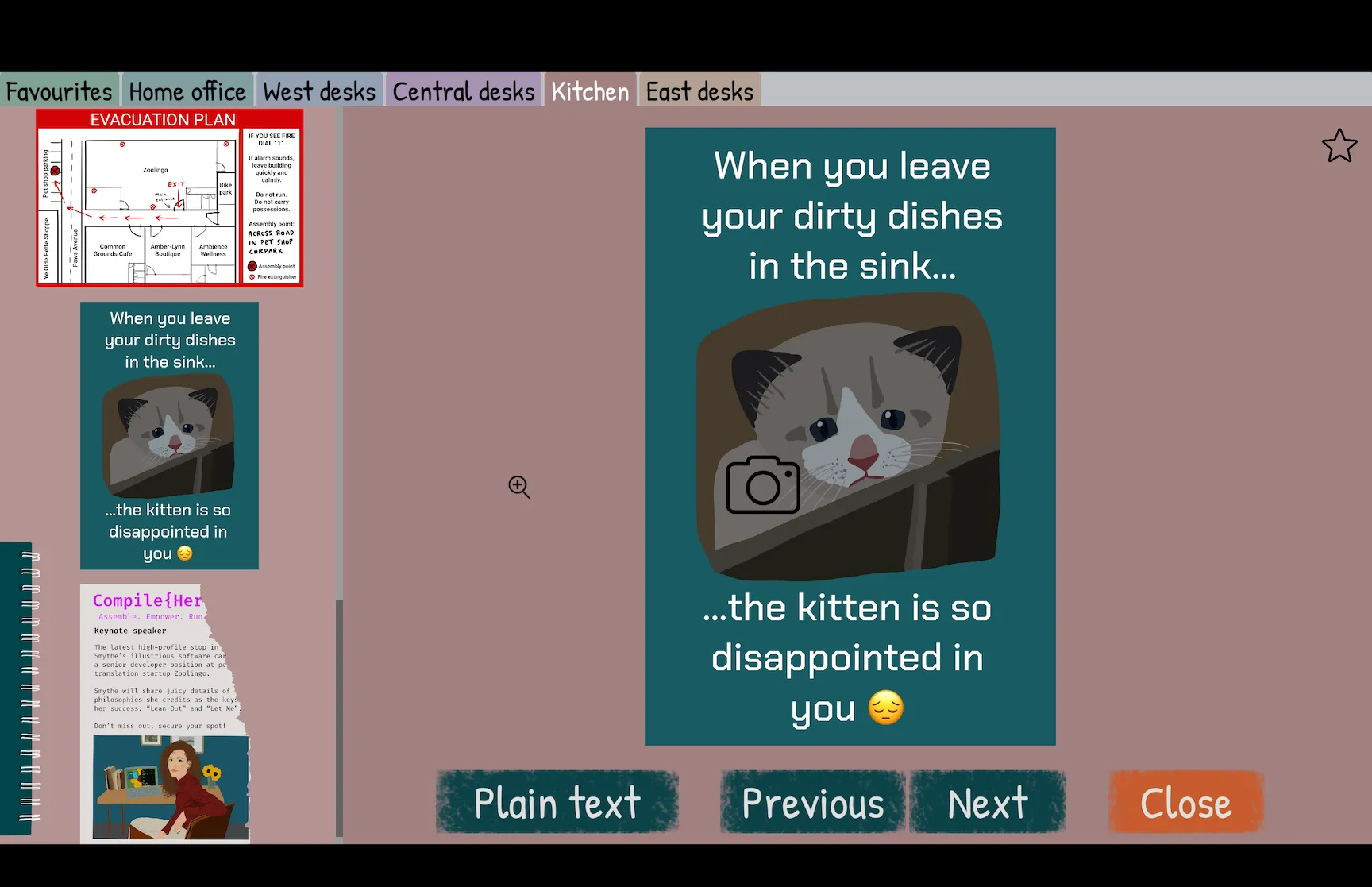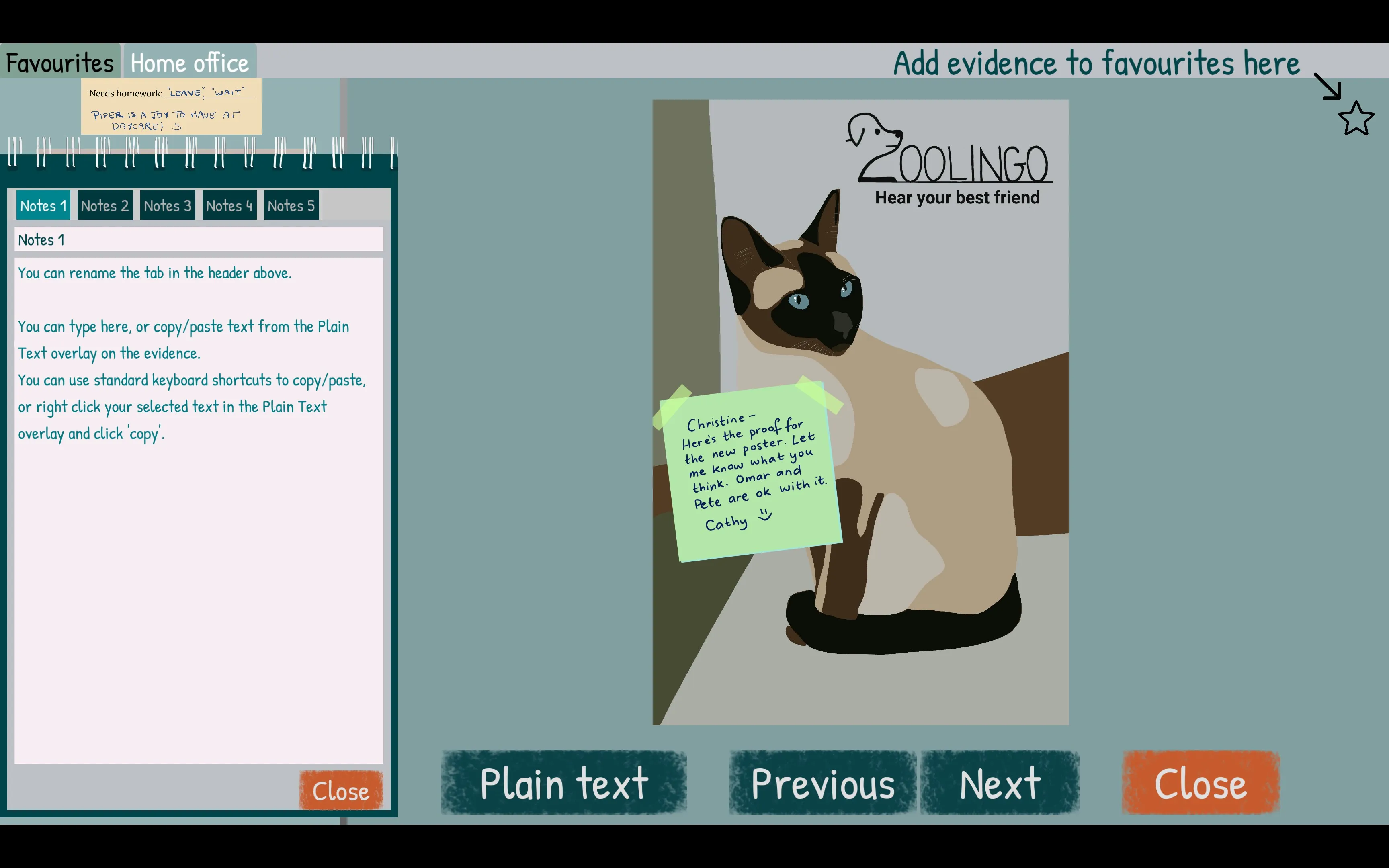After the CEO of Zoolingo (a tech startup for communicating with pets) is found murdered, it’s up to you to crack the case. You’ll spend your time poring over evidence in order to fill in the first and last name of every person (and pet!) on the company’s org chart. As you progress, you unlock new evidence in the form of scribbled notes, chat messages, and employee dating profiles. Eventually, you reach the game’s capstone puzzle, giving you the opportunity to unmask a killer.